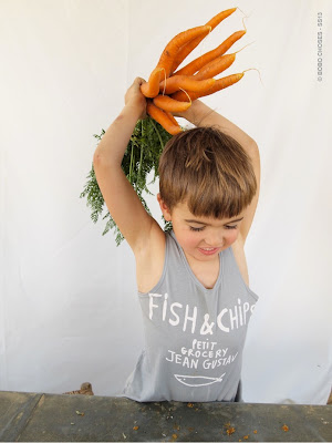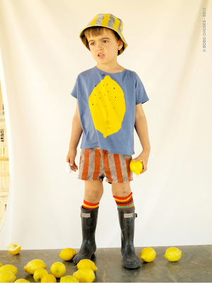 Bobo Choses ist ein Phänomen. Jedes Jahr kurz nach Erscheinen ist die gesamte Kollektion ausverkauft. Weltweit, immer und überall. Im kommenden Frühling/Sommer wird das sicher nicht anders sein. Ich habe mein Lieblingsstück schon entdeckt, eine kariere Bluse (Stoff wie oben) mit großem Elefanten auf dem Rücken. Mal sehen, was Sophie dazu sagen wird, ich kann ohne ihre Zustimmung ja leider nichts mehr kaufen. Bobo Choses’ Thema im Sommer heißt Petit Grocery, Jean Gustav. Mehr muß man dazu nicht sagen, die Bilder sprechen für sich…