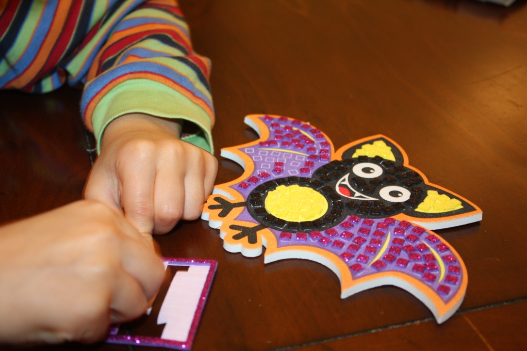 Diese Woche ist Halloween und auch bei uns wird es langsam gruselig. Der Große hat die Zeit in den Ferien genutzt um Spinnen, Fledermäuse und anderes zu basteln (Bastelset von Baker Ross).